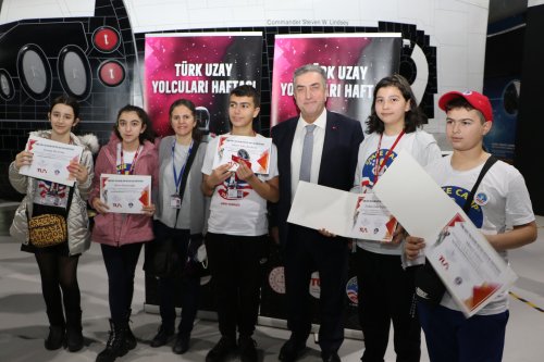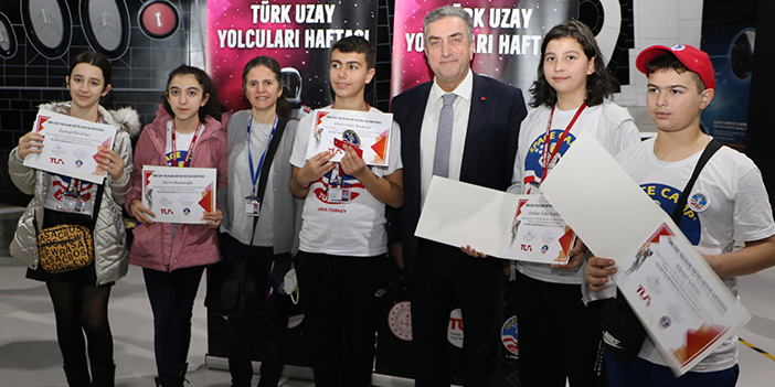 Konuşmaların ardından Türk Uzay Yolcuları Programı’nı başarıyla tamamlayan öğrenciler mezuniyet sertifikalarını alırken, “Uçuş Görevi”, “Uzay Yarışması”, “Su Roketi” görevlerinde başarılı olan takımlara da başarı ödülleri verildi.