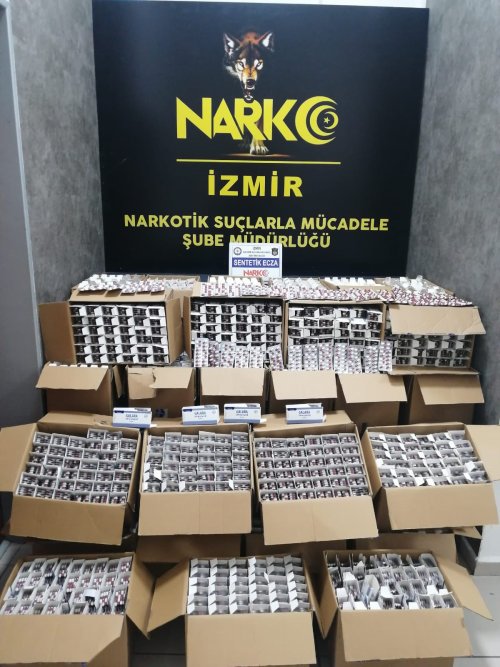 İzmir İl Emniyet Müdürlüğü Narkotik Suçlarla Mücadele Şube Müdürlüğü ekipleri, şehir dışından İzmir'e uyuşturucu madde getirileceği bilgisi üzerine harekete geçti. Belirlenen aracı Kemalpaşa ilçesinde durduran polis ekiplerince yapılan aramada, kırmızı ve yeşil reçeteye tabi 105 bin adet sentetik ecza hap ele geçirildi.