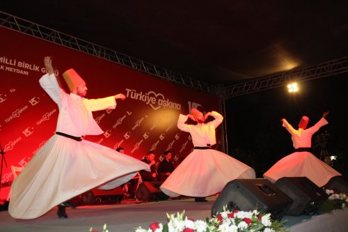 Protokol konuşmalarının ardından Cumhurbaşkanı Recep Tayyip Erdoğan’ın hitabı barkovizyondan izletildi. Saatler 22.25’i gösterdiğinde İzmir İl Müftülüğü İlahi Grubu tarafından tasavvuf musiki dinletisi icra edildi. 22.45’te Cumhurbaşkanı Erdoğan’ın 15 Temmuz gecesi TV ekranlarından yaptığı çağrının gösterimi yapıldı. 22.50’de semazen gösterisi düzenlendi. 23.10’da 15 Temmuz Senfonik Destanı barkovizyon gösterisi yapıldı, 23.35’te darbe kalkışmasının ilk görüntülerinden oluşan videolar gösterildi. 23.40’ta, kahramanlık türküleri konseri icra edildi. 00.13’te tüm camilerde aynı anda sela okundu, 00.20’de Fetih Suresi okunup dualar edildi.