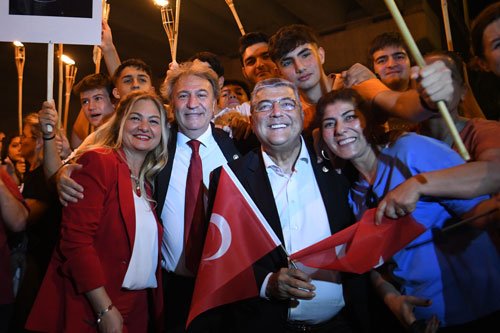 Kortej yürüyüşüne Bornova Belediye Başkanı Dr. Mustafa İduğ, eşi Ufuk İduğ, CHP İzmir Milletvekili Prof. Dr. Kamil Okyay Sındır, CHP Bornova İlçe Başkanı Ertürk Çapın, İyi Parti Bornova İlçe Başkanı Mustafa Tabak, belediye meclis üyeleri, muhtarlar, sivil toplum kuruluşları ve spor kulüpleri ile çok sayıda vatandaş katıldı. Bornovalılar, Ayyıldızlı bayraklarla kırmızıya boyanan yürüyüşün yapıldığı yol boyunca evlerinin balkonlarından heyecana katıldı.