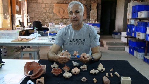 Assos Ören Yeri’nde Roma Dönemi'ne ait bir çeşme binasında devam eden kazı sırasında çeşme ile ana kaya arasındaki çöplük olarak kullanılan boşluk alanda Assos’ta gündelik hayatta insanların kullandıkları buluntulara ulaştıklarını belirten Assos Ören Yeri Kazı Başkanı Prof. Dr. Nurettin Arslan, “Çeşme yapısının kenarındaki boşlukta gündelik hayatta kullanılan parçalar ele geçirildi. Bu parçalardan yüzlerce var. Bazıları iyi korunmuş örnekler. Bu parçalardan insanların günlük hayatta içmek için kullandıkları seramik kaplar, insanların aydınlatmada kullandıkları lamba, kandil dediğimiz objelerden çok fazla sayıda örnek var. Pişmiş topraktan yapılmış 'terracottalar' dediğimiz heykelcikler var. Assos’ta biliyoruz ki, klasik dönemden itibaren üretimi olduğunu biliyoruz. Terracottalar mezarlara hediye olarak kullanılan eşyalar. Bu parçaların dışında çocukların oyuncak olarak kullandıkları objeler arasında yer alıyor. Önümüzdeki 1 ay içinde bu çöplükte bulunan bütün eserlerin istatistiğini yapıp, üzerine çalıştığımız zaman, Assos’ta antik dönemde millattan sonra 3 ve 4’üncü yüzyılda insanların gündelik yaşamları hakkına bilgiler elde edebileceğiz. Bu parçaların tarihleri, bazı terrecottalar Helenistik Dönem dediğimiz belki milattan önce 2. yüzyıla kadar gidiyor ama ağırlıklı olarak bu çöplüğün tarihinin milattan sonra 3 ve 4’üncü yüzyıl olduğunu söyleyebiliriz. Geç Roma Dönemi olduğunu söylemek mümkün” dedi.