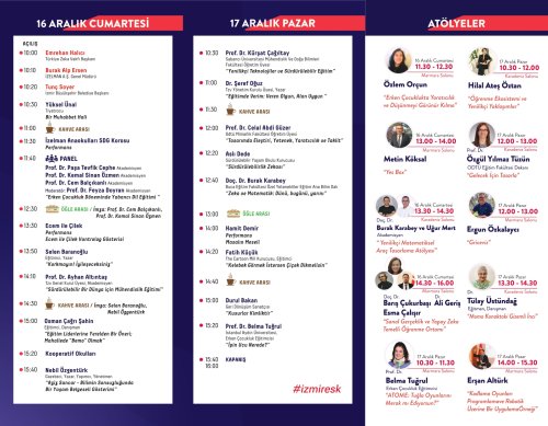 Saatler 11.30’u gösterdiğinde İZELMAN Anaokulları öğrencileri için hazırlanan sürdürülebilirlik şarkısı İZELMAN Anaokulları Sürdürülebilirlik Korosu tarafından seslendirilecek. Hamit Demir ve Nebil Özgentürk’ün programa özel özgün içerikleri ile zenginleşen kongrede eğitim profesyonellerinin kendilerini her alanda geliştirebilecekleri atölyeler de bulunuyor. Kongre programı, sunumların ve atölyelerin yanı sıra sanat performansları ve panel içeriyor. Eğitim almak ve bilgi edinmek isteyen herkesin ücretsiz katılabileceği ancak atölyelerin ücretli olduğu kongrenin program detaylarına ise https://esk.tzv.org.tr/ sitesinden ulaşılabilir.