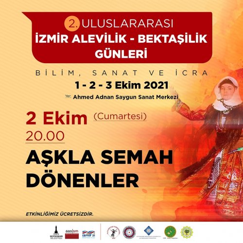 İzmir Büyükşehir Belediyesi tarafından ikincisi düzenlenen Uluslararası Alevilik Bektaşilik Günleri 1-3 Ekim 2021 tarihleri arasında ücretsiz ve halka açık olarak Ahmed Adnan Saygun Sanat Merkezi’nde yapılacak.