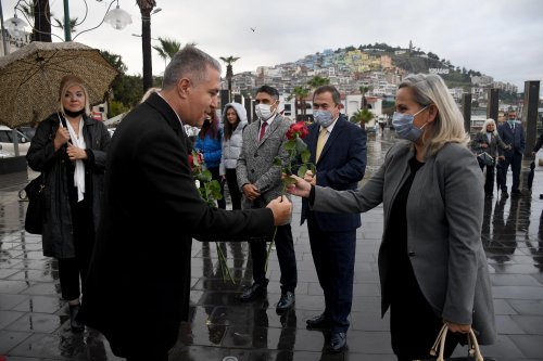 Atatürk Meydanı'nda gerçekleşen Öğretmenler Günü çelenk sunma töreni Kuşadası Belediye Başkan Yardımcısı Oğuzhan Turan, Kuşadası İlçe Milli Eğitim Müdürü Vekili Fatma Kesici, ilçe protokolü ve öğretmenler katıldı. İlçe Milli Eğitim Müdürü Vekili Kesici’nin Atatürk Anıtı'na çelenk koymasıyla başlayan tören, saygı duruşunun ardından İstiklal Marşı’nın okunmasıyla sona erdi. Törenden sonra Belediye Başkan Yardımcısı Oğuzhan Turan, kutlama programına katılan öğretmenlere gül hediye etti.