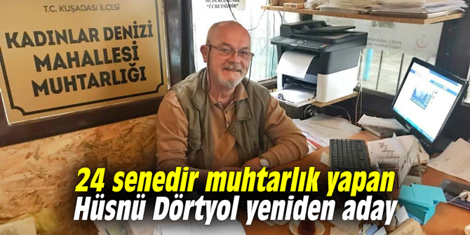 Aydın'ın Kuşadası ilçesinde Kadınlar Denizi Mahallesi muhtarlığını 24 yıldır başarıyla yürüten Hüsnü Dörtyol, önümüzdeki aylarda gerçekleşecek olan yerel seçimlerde yeniden aday olacağını açıkladı. Uygulamaları ve dayanışmacı ruhuyla mahallelinin sevgisini kazanan Muhtar Dörtyol, beş dönemdir başarıyla yürüttüğü görevini altıncı dönemde de sürdürmek istediğini açıkladı.