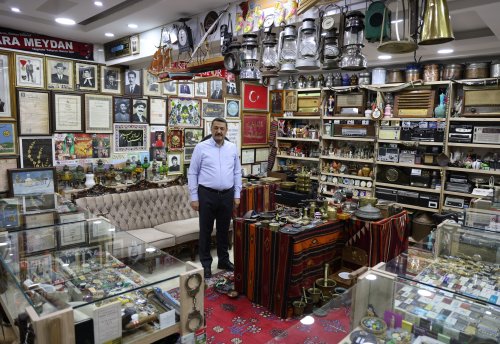 40 yılda topladığı antika eşyaları ofisinde sergiliyor