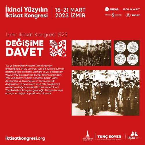 “Değişime Davet” başlığıyla düzenlenen “İzmir İktisat Kongresi 1923” sergisi, Ahmed Adnan Saygun Sanat Merkezi’nde (AASSM) sanatseverlerle buluşacak. Sergide 1923’te düzenlenen ilk İzmir İktisat Kongresi ve kongreye giden yoldaki sürece dair birçok fotoğraf bulunuyor. “Çokluğa ve Birliğe Davet” başlığıyla düzenlenen ve AASSM’de sergilenecek “Lingua Franca”nın her bir tasarım yüzeyi, İzmir’de yaşayan bir Levanten ailenin evindeki bir duvar olarak düşünüldü. Bu biçimiyle sembolik bir anlatıma sahip olan sergi, bir arada uyum içinde yaşamanın en somut örneklerinden biri olan, ülkesi olmayan “ulus” Levantenlerin ticaret hayatına, sosyal yaşamına ve kültürlerine dair bir bakış sunuyor.