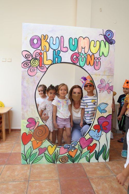 Öğrencilerden bazılarının ilk defa okula ve derse geldiği bu özel günde, DEÜ Rektörü Prof. Dr. Nükhet Hotar ise minik kalpleri yalnız bırakmadı. DEÜ-Özel 75. Yıl Eğitim Kurumları’nın Yönetim Kurulu Başkan Yardımcısı ve Buca Eğitim Fakültesi Dekanı Prof. Dr. Esra Bukova Güzel’in, Kurucu Temsilcisi Doç. Dr. Ayten Erduran’ın, Okul Müdürü Güzin Gül Yurtsever’in, okul yönetiminin ve öğretmenlerin eşlik ettiği ziyarette Rektör Hotar, minik öğrencilerin dersine girdi; oyununa katıldı; şarkılarını dinledi. Kendisini çiçeklerle karşılayan öğrencilere teşekkür de eden Rektör Hotar, “Eylül ayının bu güzel gününde ve eğitim öğretim yılının açılışında, hem evlatlarımızla bir araya gelmekten mutluluk duyduk hem de öğretmen ve velilerimizin heyecanına ortak olmaya çalıştık. Yaz tatilinin ardından okullarına kavuşan öğrencilerimizin moralinin yüksek olması, verimli ve güzel bir eğitim yılı geçireceğimizi gösterdi. Bu da, bizi sevindirdi” dedi.