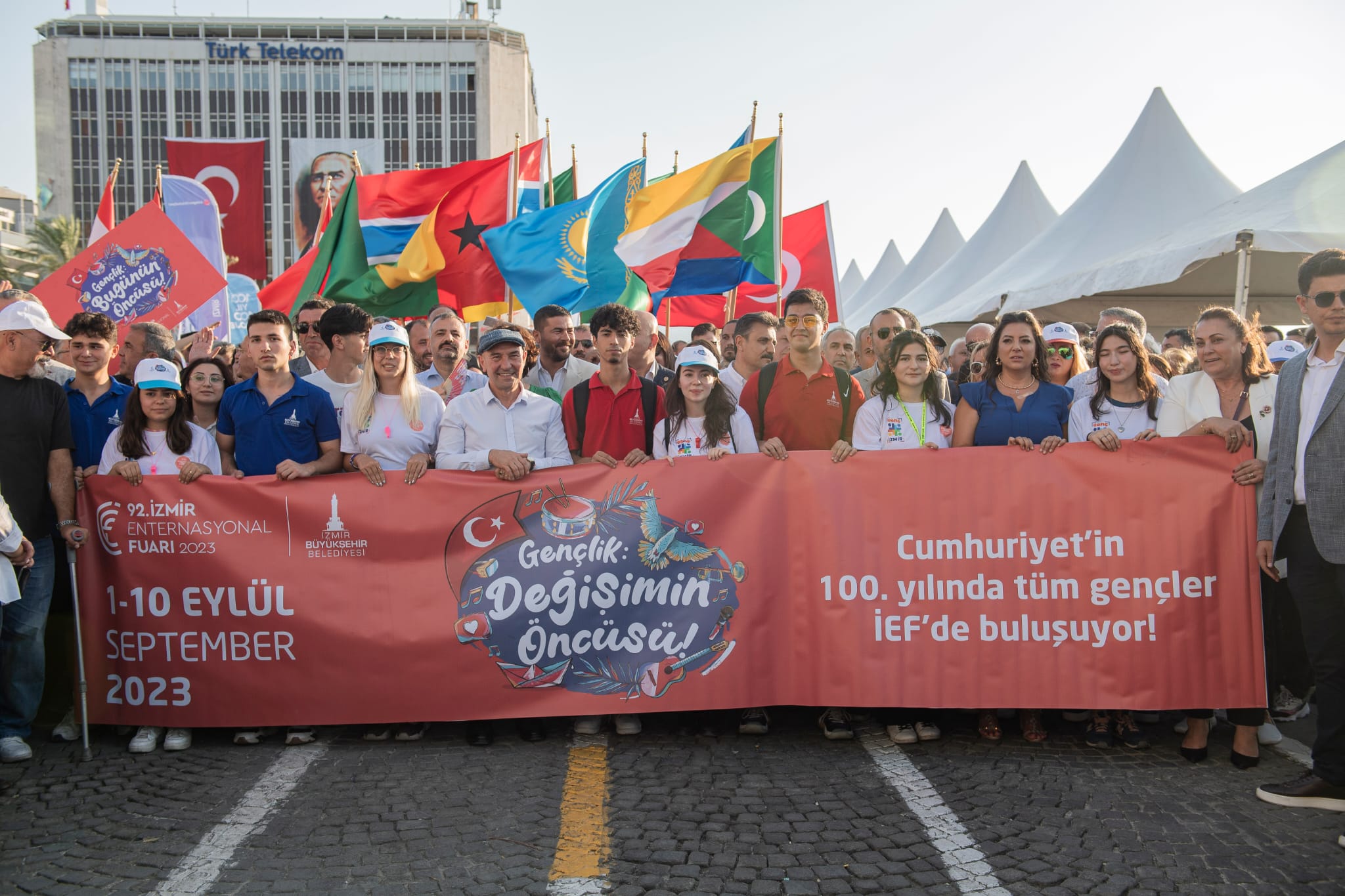 Bu yıl “gençlik” temasıyla düzenlenen İzmir Enternasyonal Fuarı öncesinde muhteşem bir kortej düzenlendi. Birbirinden renkli görüntülere sahne olan kortejde İzmir Büyükşehir Belediye Başkanı Tunç Soyer dünya gençleriyle Kültürpark’a yürüdü.