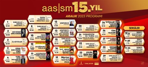İzmir Büyükşehir Belediyesi Ahmed Adnan Saygun Sanat Merkezi, 15. kuruluş yıldönümüne özel Aralık ayında dopdolu bir programla 2023’e veda edecek.