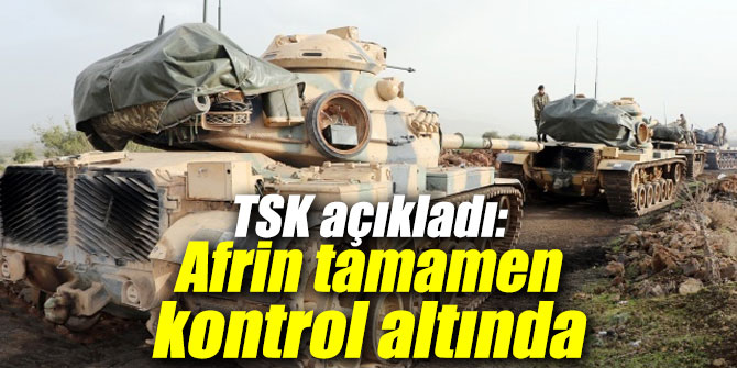 TSK açıkladı: Afrin bölgesi tamamen kontrol altında