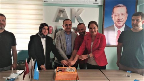 Sürekli, burada da İlçe Kadın Kolları Başkanlığınca AK Parti'nin 21. kuruluş yıl dönümünü kutlamak için hazırlanan pastayı, Genel Merkez MKYK Üyesi Şaziye Gündüz, İlçe Başkanı Yaşar Demir ve Aliağa Kadın Kolları Başkanı Şule Akman Yıldırım ile biriikte kesti.