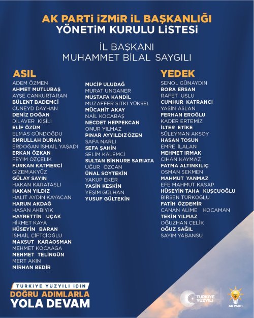 AK Parti İzmir İl Yönetim Kurulu Üyeleri aşağıdaki gibi belirlendi: