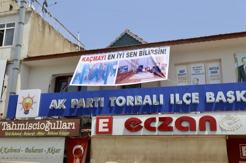 Önceki gün Cumhurbaşkanı Recep Tayyip Erdoğan hakkında çeşitli iddialarda bulunan CHP Genel Başkanı Kemal Kılıçdaroğlu’na bir tepki de Torbalı’dan geldi. AK Parti Torbalı İlçe binasına asılan pankart üzerinde “Kaçmayı en iyi sen bilirsin” ifadeleri yer aldı. Kılıçdaroğlu’nun 15 Temmuz darbe gecesi havaalanından çıkış görüntülerinin ve darbe girişimini televizyondan izlediği görüntülerin yer aldığı pankart, ilçe halkı tarafından da büyük destek gördü.