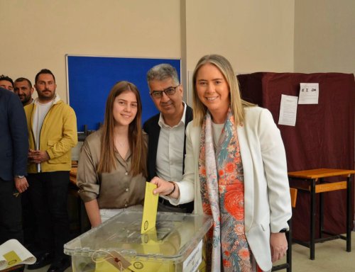 AK Parti İzmir Milletvekili ve İzmir 2. Bölge Milletvekili Adayı Ceyda Bölünmez Çankırı, eşi ve kızıyla beraber Karşıyaka Cihat Kora Anadolu Lisesi’nde oyunu kullandı.