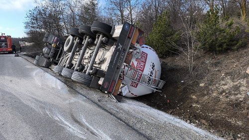 Akaryakıt yüklü tır şarampole devrildi: 1 ölü
