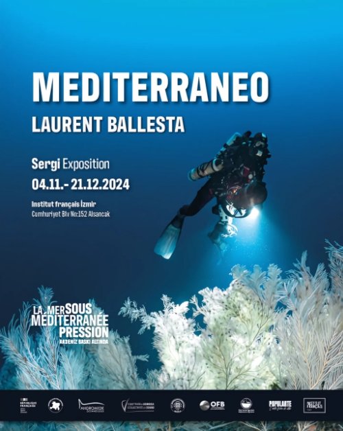 Institut français İzmir Sergi Salonu ise yine 4 Kasım’da Fransız fotoğrafçı ve Doğa Bilimci Biyolog Laurent Ballesta ve Su Altı Fotoğraçılığı’nda Fransa Şampiyonu olan Tony Viacara’nın Akdeniz’in su altı dünyasını gözler önüne seren MEDITERRANEO sergisine ev sahipliği yapacak. Girişin serbest olduğu sergi, ekolojik farkındalığı artırmak amacıyla “Akdeniz, Baskı Altında Bir Deniz” etkinlik dizisinin parçası olarak düzenleniyor.