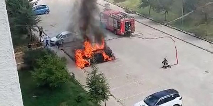 Park halindeki araç alev aldı