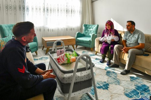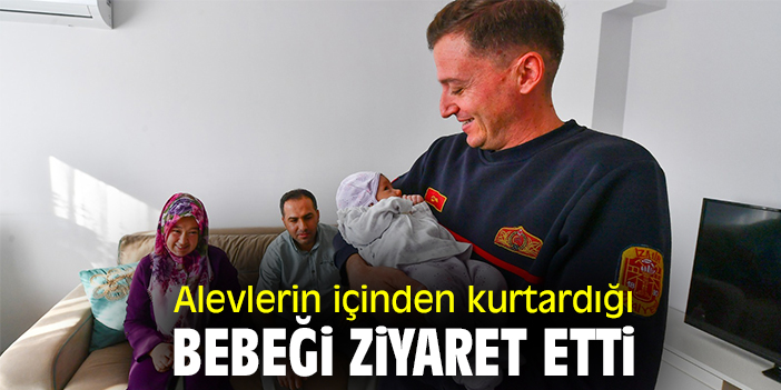 Alevlerin içinden kurtardığı bebeği ziyaret ett