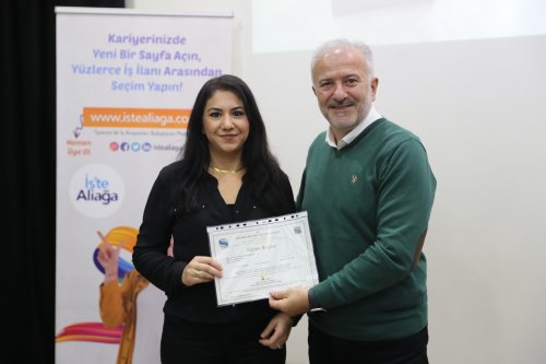 Eğitimleri tamamlayan kursiyerlere, İstanbul Şişli Meslek Yüksek Okulu Uzaktan Eğitim Uygulama ve Araştırma Merkezi tarafından düzenlenmiş ve üç alanda hazırlanmış E-Devlet onaylı Mesleki Yeterlilik Belgeleri verildi. Kursiyerlere belgelerini Aliağa Belediye Başkan Yardımcısı Hakan Şimşek takdim etti. Sertifika programını tamamlayan adaylara yönelik istihdam danışmanlığı da Aliağa Belediyesi İstihdam Ofisi tarafından sağlanıyor.