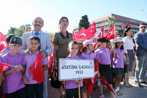 ye meclis üyeleri, siyasi parti yöneticileri, oda başkanları, öğretmenler, öğrenciler ve vatandaşlar katıldı. Programda Kaymakam Zekeriya Güney, Aliağa Belediye Başkanı Serkan Acar ve Garnizon Komutanı Albay Faruk Altun Atatürk Anıtı’na çelenk sundu.