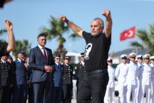 Aliağa Kaymakamlığı tarafından Cumhuriyet meydanında organize edilen programa Aliağa Kaymakamı Zekeriya Güney, Aliağa Belediye Başkanı Serkan Acar, Garnizon Komutanı Albay Faruk Altun, Aliağa Cumhuriyet Başsavcısı Mehmet İmir, kurum müdürleri, askeri erkan, beledi