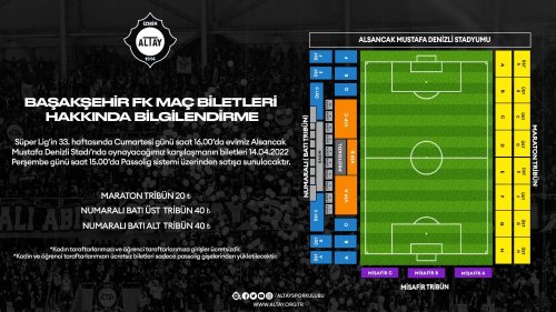 Spor Toto Süper Lig’in 33. haftasında oynanacak Altay - Başakşehir karşılaşmasının biletleri satışa çıktı.