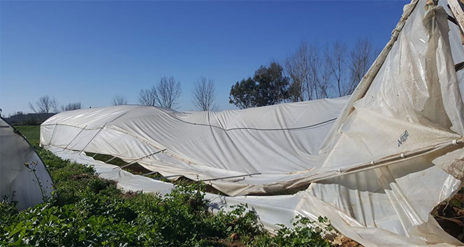 Antalya'nın Manavgat ilçesinde yağış sonrası çıkan hortum yaklaşık 20 dekarlık alanda sebze ekili 8 seraya zarar verdi.