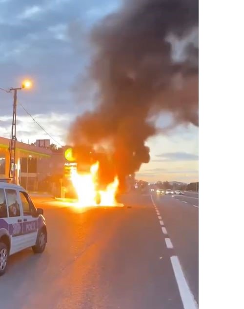 İstanbul'da Kumburgaz E-5’te takla atan binek araç benzin istasyonu tabelasına çarptıktan sonra alev alev yandı. Olayda 3 kişi yaralanırken, kaza anı güvenlik kamerası tarafından kaydedildi.