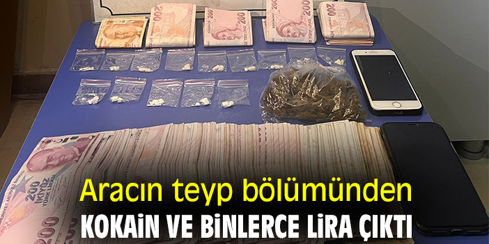 Aracın teyp bölümünden kokain ve binlerce lira çıktı
