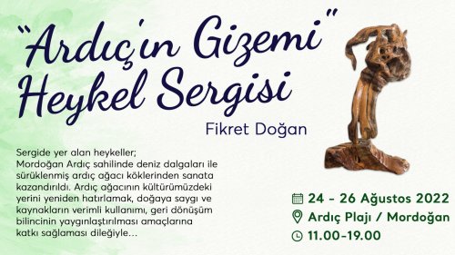 Öte yandan sanatçı Fikret Doğan'ın sergide yer alan heykelleri, Mordoğan Ardıç koyuna vuran Ardıç ağacı köklerinden yapıldı. Heykel sergisi ile Ardıç ağacının Karaburun'un tarihi kültürel mirasında olan yerini yeniden hatırlatılacak. Doğaya saygı, kaynakların verimli kullanımı ve geri dönüşümün yaygınlaştırılması amacını taşıyan sergi saat 11:00 - 19:00 saatleri arasında görülebilecek.