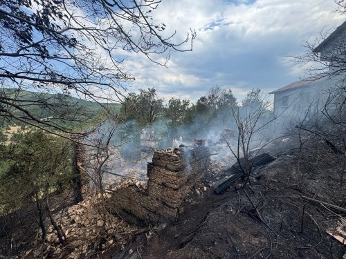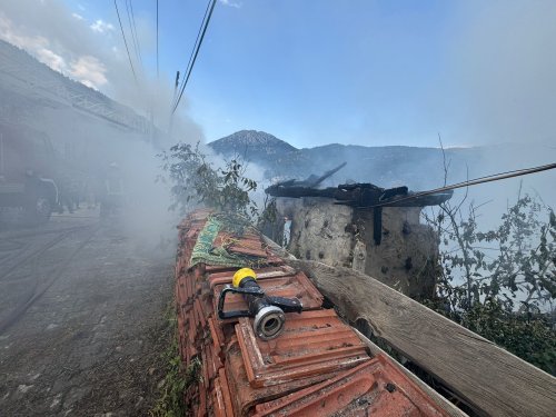 Antalya'nın Akseki ilçesinde çıkan anız yangını düğmeli evlere sıçradı. Yangında 100 yıllık iki düğmeli ev küle döndü, yakınındaki iki ev de zarar gördü.