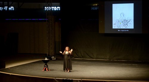 Füsun Demirel, yönetmenliğini ve oyunculuğunu üstlendiği ‘Aşk Dersleri’ isimli oyunla Kuşadalılarla buluştu.