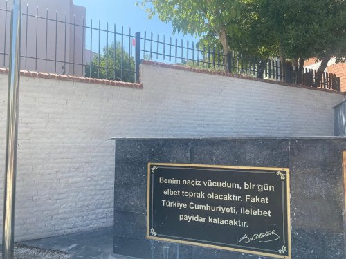 Anıttaki Atatürk'ün 'Benim naçiz vücudum, bir gün elbet toprak olacaktır. Fakat Türkiye Cumhuriyeti, ilelebet payidar kalacaktır', 'Bütün hayatımda sevinçle geçirdiğim bir gece vardır. O gece; ordumuzun İzmir'e girdiği günün burada geçirdiğim gecesidir' sözleri ise siyah boya ile karalandı.