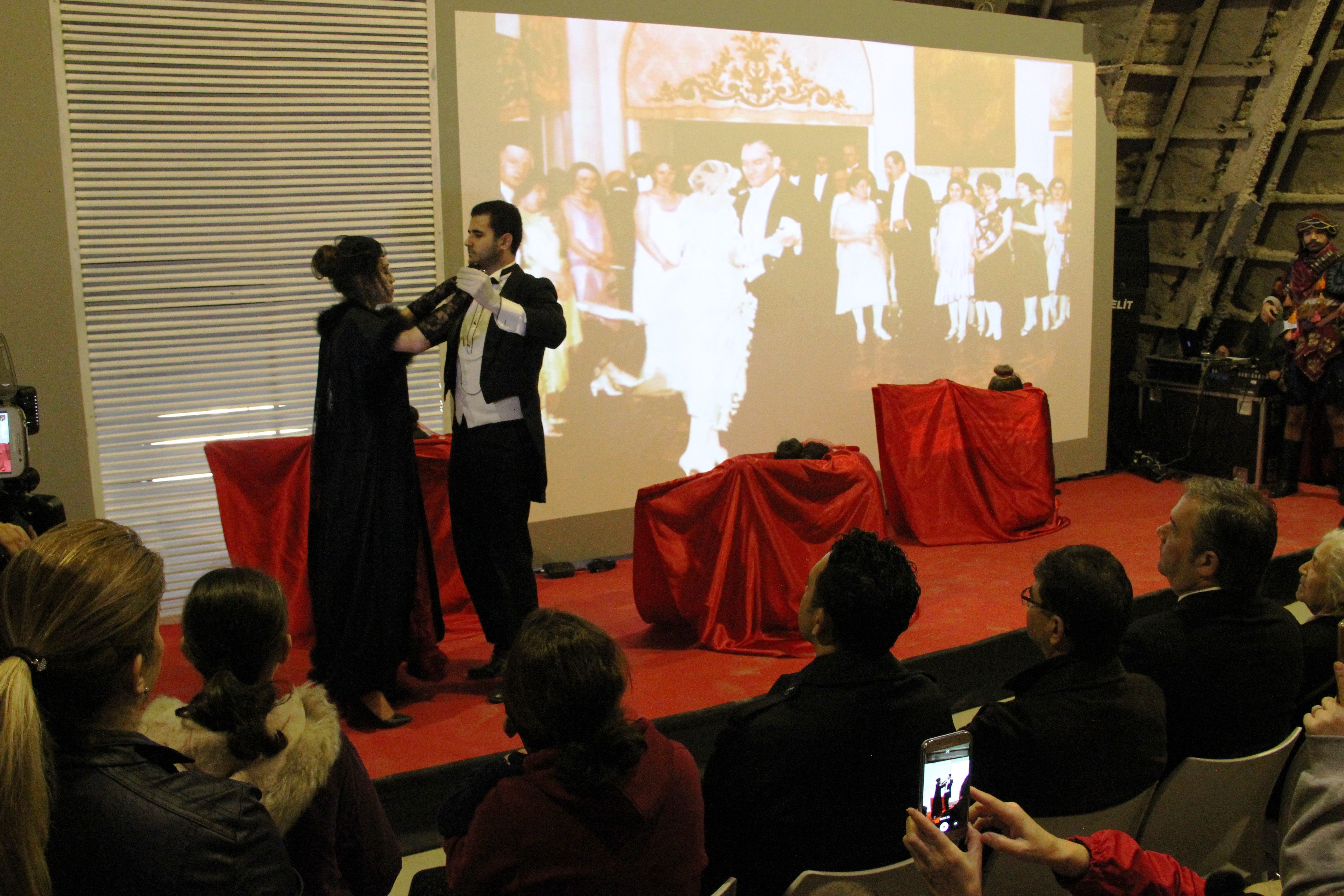 Zeybek gösterisiyle birlikte Atatürk’ün vals yaptığı sahnenin de canlandırıldığı etkinlikte kursiyerlerin seslendirdiği Atatürk’ün sevdiği şarkılar ise izleyenlerin duygulu anlar yaşamasına neden oldu.