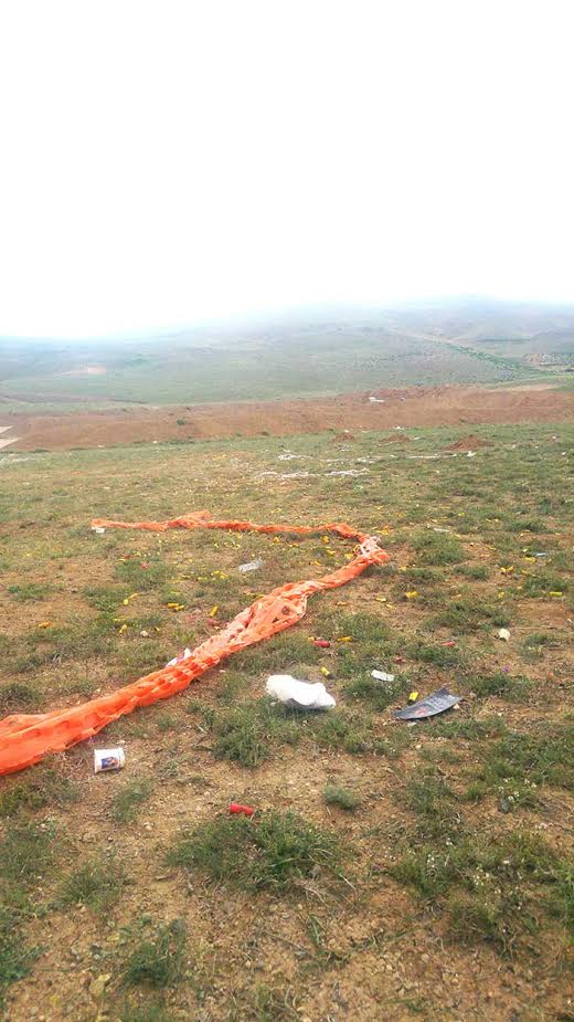 Yine burada görmüş olduğunuz gibi emniyet bantları, tamamen ilerde görüldüğü gibi yiyecek içecek artıkları, poşetler, şişeler, pet şişeler, her şey olduğu gibi duruyor. Yine burada plastik kelepçeler, kolilerden kesilmiş olsa gerek. Plastik doğaya zarar veren maddelerden bir tanesi, yok olmuyor kolay kolay. Genel olarak da atış poligonunu alayım, bütün rezilliği herkes görsün. Organizasyon yapan arkadaşları da bu rezilliklerinden, doğaya verdikleri bu pislik ve zarardan dolayı ben tebrik ediyorum."