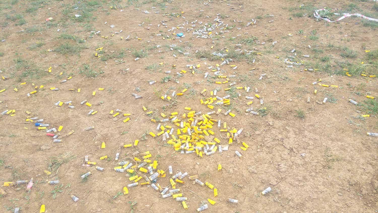 Atış yapılan fişeklerin boş kapçıkları, yiyecek artıkları, fişek kutuları her türlü pislik ve doğaya zarar verecek her şeyi olduğu gibi bırakmışlar.