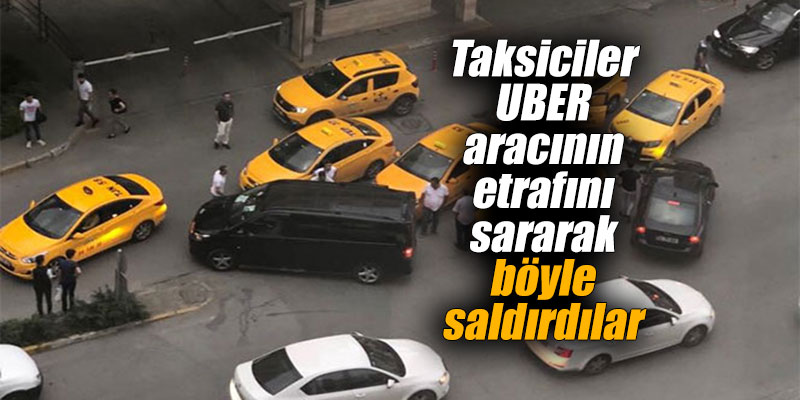 Taksiciler UBER aracının etrafını sararak böyle saldırdılar
