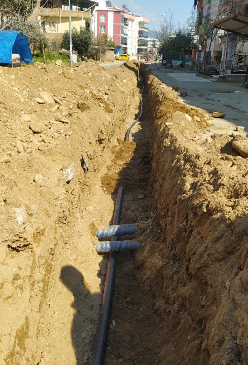 Çözüm odaklı, etkili çalışmalarla kalıcı yatırımları hayata geçiren ASKİ Genel Müdürlüğü ekipleri tarafından Nazilli ilçesi Yeşil mahalle 616/1 sokakta içme suyu hattı yapım çalışması gerçekleştiriliyor.