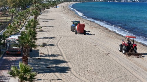 Aydın Büyükşehir Belediyesi, Kuşadası ilçesinde sorumluluk alanlarında bulunan sahilleri yaz sezonuna hazırlamak için çalışmalarını sürdürüyor.