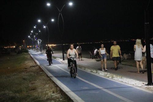 Kuşadası Sevgi Plajı Yürüyüş ve Bisiklet Yolu, modern yapısı, gece aydınlatması ve iki yönde yaklaşık 20 kilometrelik parkuru ile tüm vatandaşlardan beğeni topluyor.