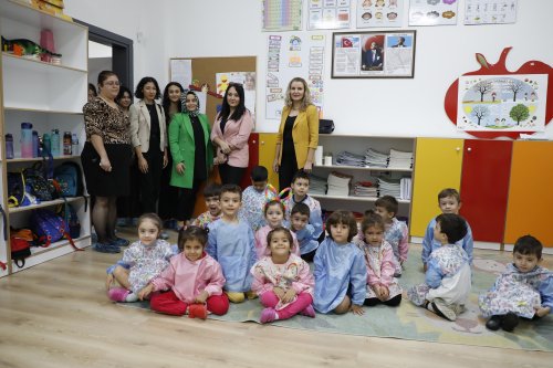 Çocuklar ile birlikte derslere katılan, sosyal etkinlikleri gözlemleyen Denizli Büyükşehir Belediyesi heyeti, kent genelinde birçok farklı noktada bulunan Çocuk Gelişim Merkezleri’ni ziyaret etti. 3-6 yaş aralığında ki öğrencilere resim, spor, müzik, satranç, bale, drama ve görsel sanatların da aralarında bulunduğu birçok konuda eğitim verilen Aydın Büyükşehir Belediyesi Çocuk Gelişim Merkezleri’nde bulunan ekipmanlar ve eğitim gereçlerini de inceleyen heyet, öğrencilerin aktivitelerine de birebir şahit oldu.