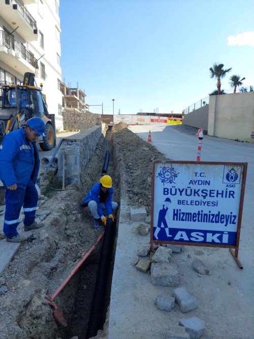 Kanalizasyon altyapı ağına yeni hatlar eklemek için de yatırımlarını sürdüren ASKİ ekipleri; İncirliova’nın Acarlar Mahallesi’nde, Efeler’in Mimar Sinan Mahallesi Sinan 1 Caddesi’nde, Kuşadası’nın Ege ve Davutlar mahallelerinde, Didim’in Altınkum Mahallesi 218 Sokak’ta ve Efeler’in Umurlu Mahallesi 2045 Sokak’ta kanalizasyon hattı yapım ve yenileme çalışmaları gerçekleştiriyor.