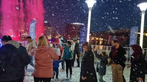 Aydın’da uzun yıllardır kar yağışı yaşanmazken Aydınlılar, yapay kar makineleriyle gerçekleştirilen etkinliğe yoğun ilgi gösterdi. Vatandaşların bol bol hatıra fotoğrafı çektirdiği etkinlik, gece boyunca sürecek. Diğer taraftan Atatürk Kent Meydanı’ndaki havuzda da lazer ve ışık gösterisi düzenleniyor.