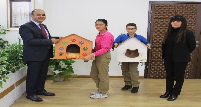 İzmir’de, çoğunun babası mobilyacı olan ortaokul öğrencileri, proje ödevi olarak kedi evleri yaptı.