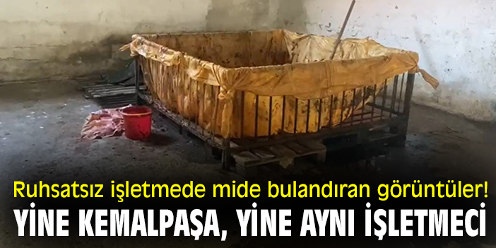 Ruhsatsız işletmede mide bulandıran görüntüler! Yine Kemalpaşa, yine aynı işletmeci