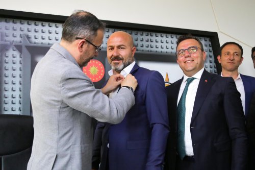 Gençlik ve Spor Bakanı Dr. Mehmet Kasapoğlu, Büyükşehir Belediyesi İtfaiye Daire Başkanlığı personeli Abdurrahman Türkmen'e AK Parti rozeti taktı.