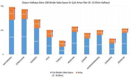 9-15 Ekim arasında vaka sayısı bir önceki haftaya göre en çok artan on il ise şöyle: