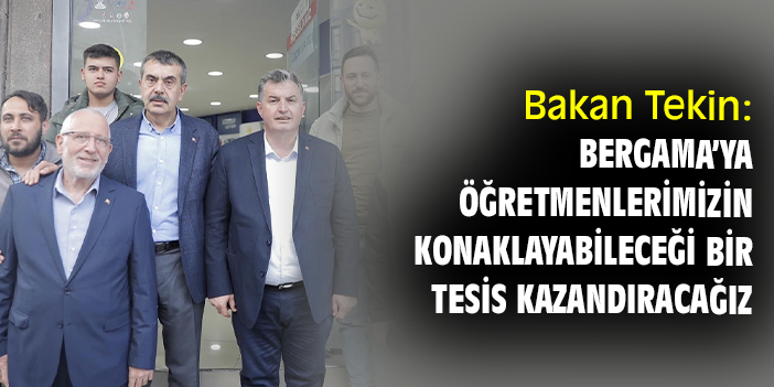 Milli Eğitim Bakanı Yusuf Tekin, Bergama’ya ziyarette bulunarak "Sadık başkan kazanırsa Bergama'ya öğretmenlerimizin konaklayabileceği bir tesis kazandıracağız" dedi.