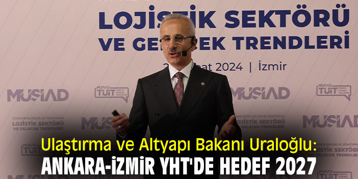İzmir’de düzenlenen ‘Lojistik Sektörü ve Gelecek Trendleri’ toplantısına katılan Ulaştırma ve Altyapı Bakanı Abdulkadir Uraloğlu, Ankara-İzmir Yüksek Hızlı Tren Projesini 2027 yılında bitirmeyi hedeflediklerini belirtti.